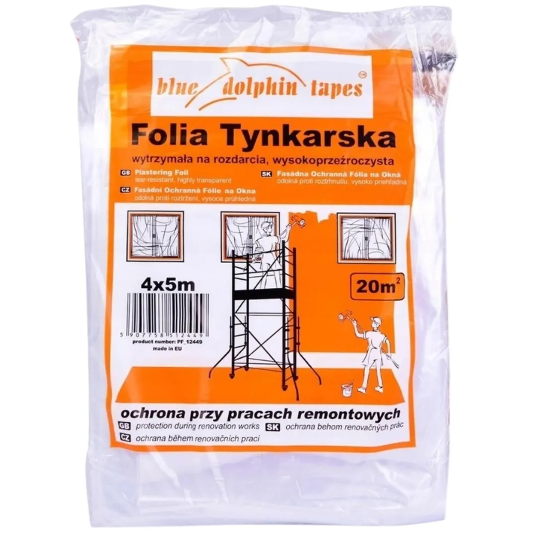 Folia tynkarska Blue Dolphin to praktyczne i uniwersalne zabezpieczenie powierzchni podczas malowania, tynkowania oraz innych prac wykończeniowych. Skutecznie chroni przed kurzem, brudem, farbą i zaprawami, utrzymując otoczenie w czystości. Dzięki łatwemu rozwijaniu i możliwości przycięcia na dowolną długość, doskonale sprawdza się w każdych warunkach – zarówno w domu, jak i na budowie.