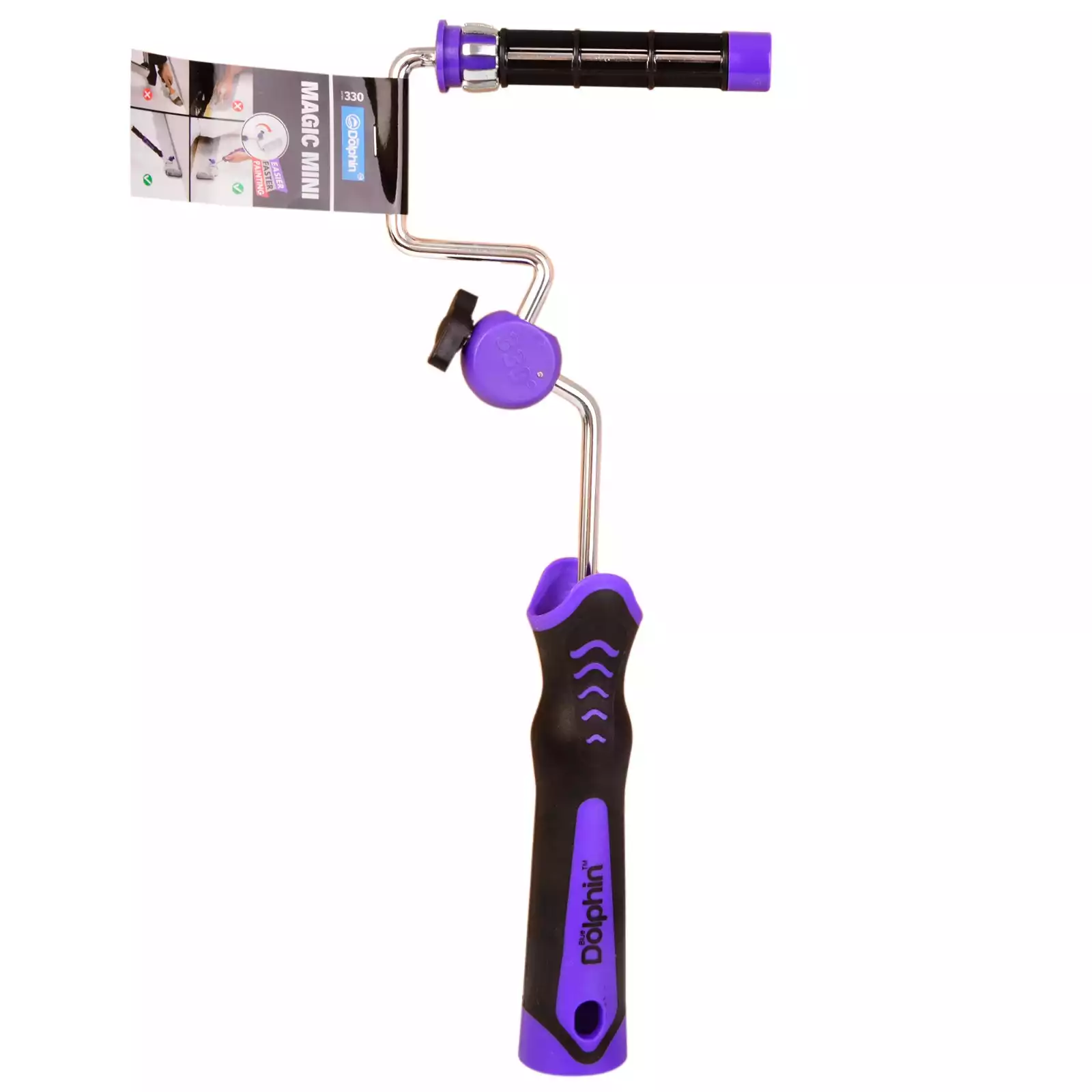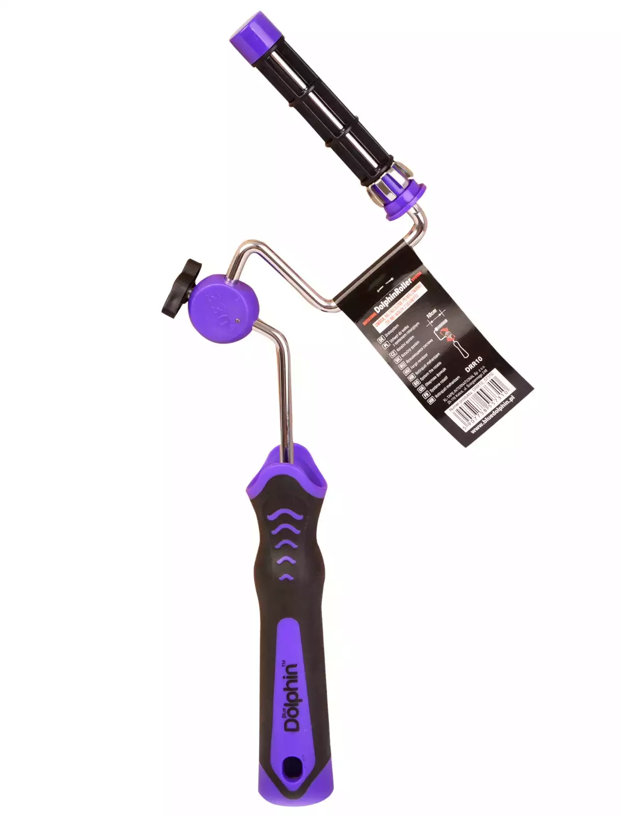 Chromowany zatrzask zapobiega zsuwaniu się wałka podczas malowania, a dwukomponentowa ergonomiczna rączka zapewnia pewny chwyt.