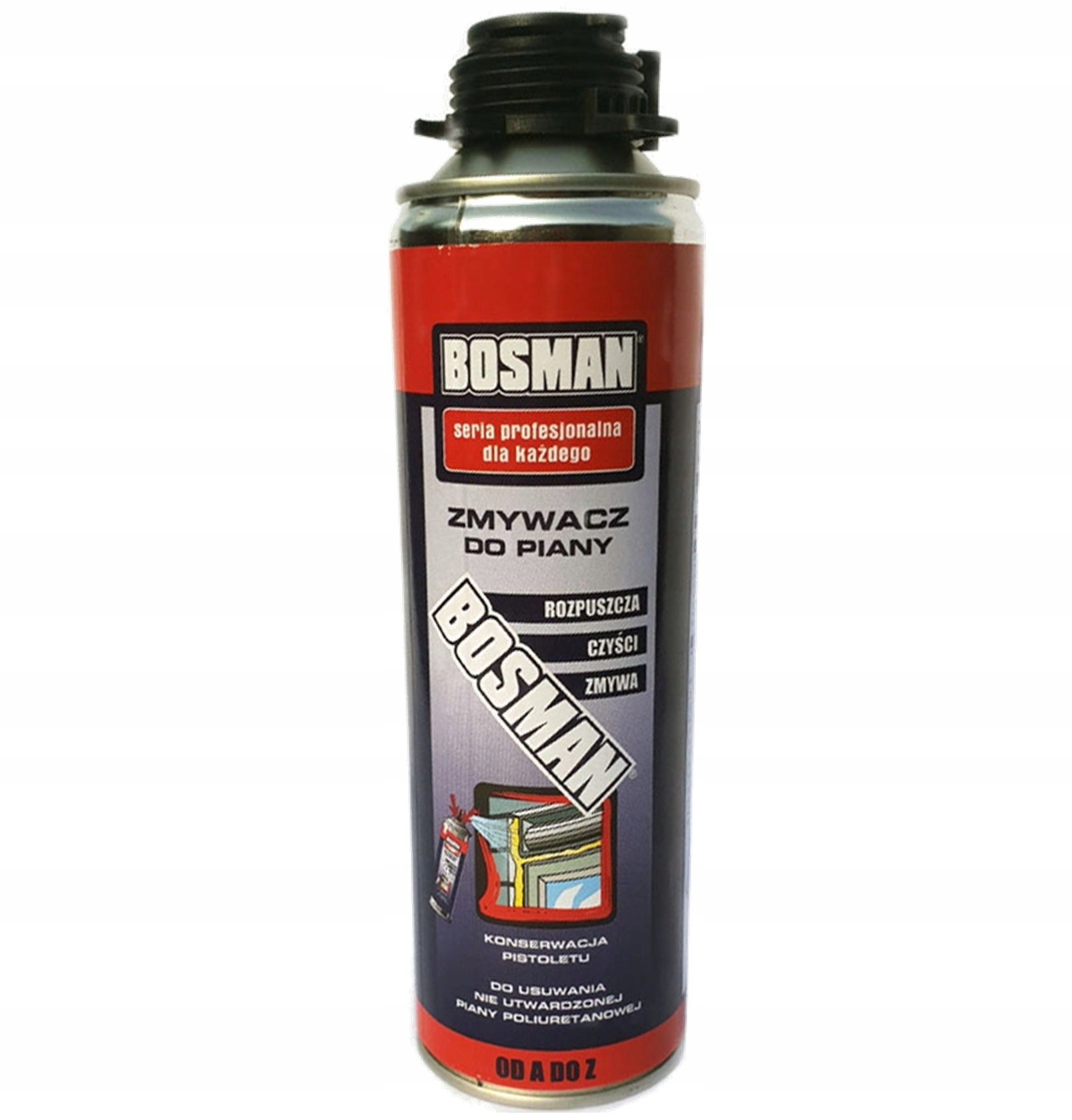 BOSMAN Czyścik uniwersalny do piany montażowej 500ml. Służy do czyszczenia pistoletów do pianki poliuretanowej. Rozpuszcza nieutwardzoną piankę poliuretanową jednoskładnikową i dwuskładnikową, a także świeży nie utwardzony klej poliuretanowy.