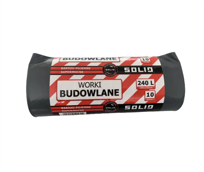 Bardzo mocne worki budowlane pojemność 240 litrów. Opakowanie zawiera 10 sztuk.